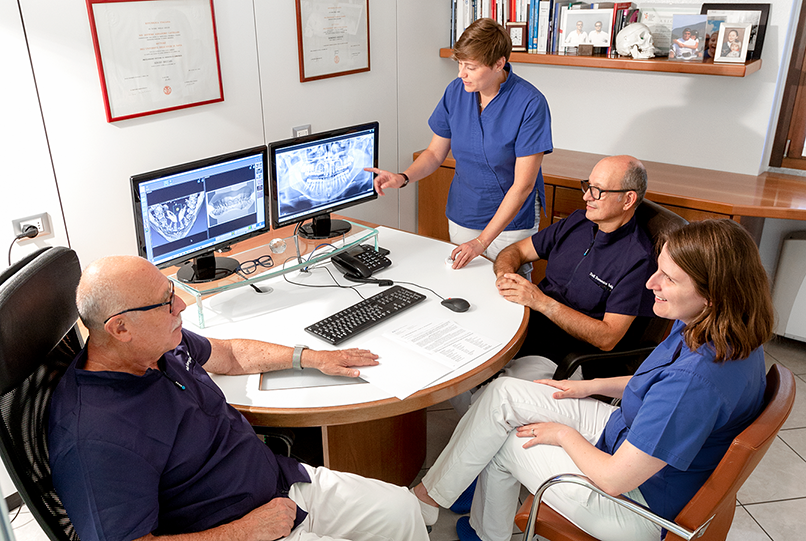 Al paziente che richiede una consulenza odontostomatologica viene eseguita una visita in cui vengono raccolti tutti i dati clinici e strumentali (RX, modelli, foto, esami del paziente) necessari per studiare il caso, formulare una diagnosi, valutare un adeguato piano terapeutico e formulare il relativo preventivo, che vengono esposti al paziente in un successivo appuntamento.